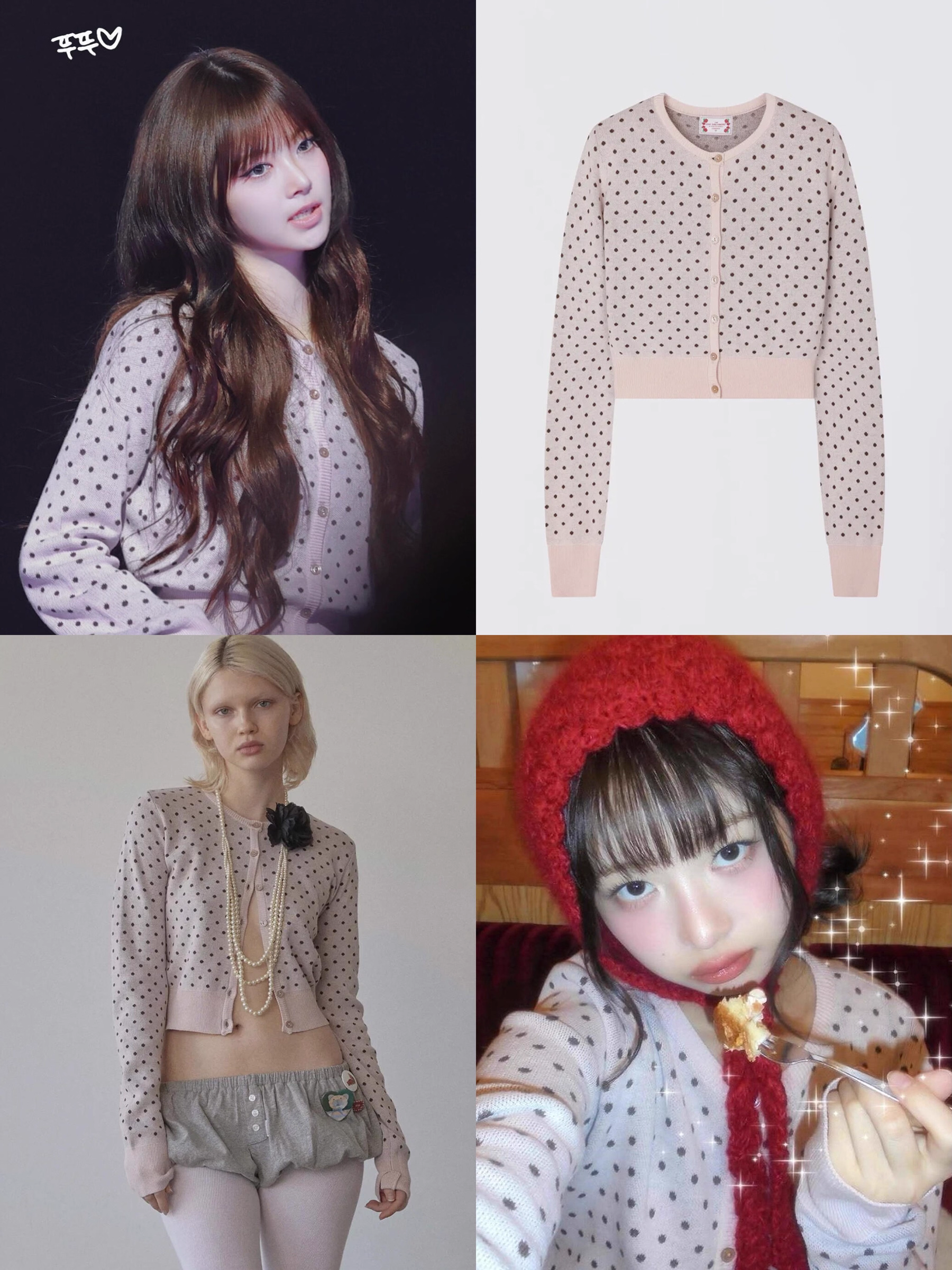 IVE Rei&LE SSERAFIM Eunchae Inspired Polka Dot Cropped Knit Cardigan