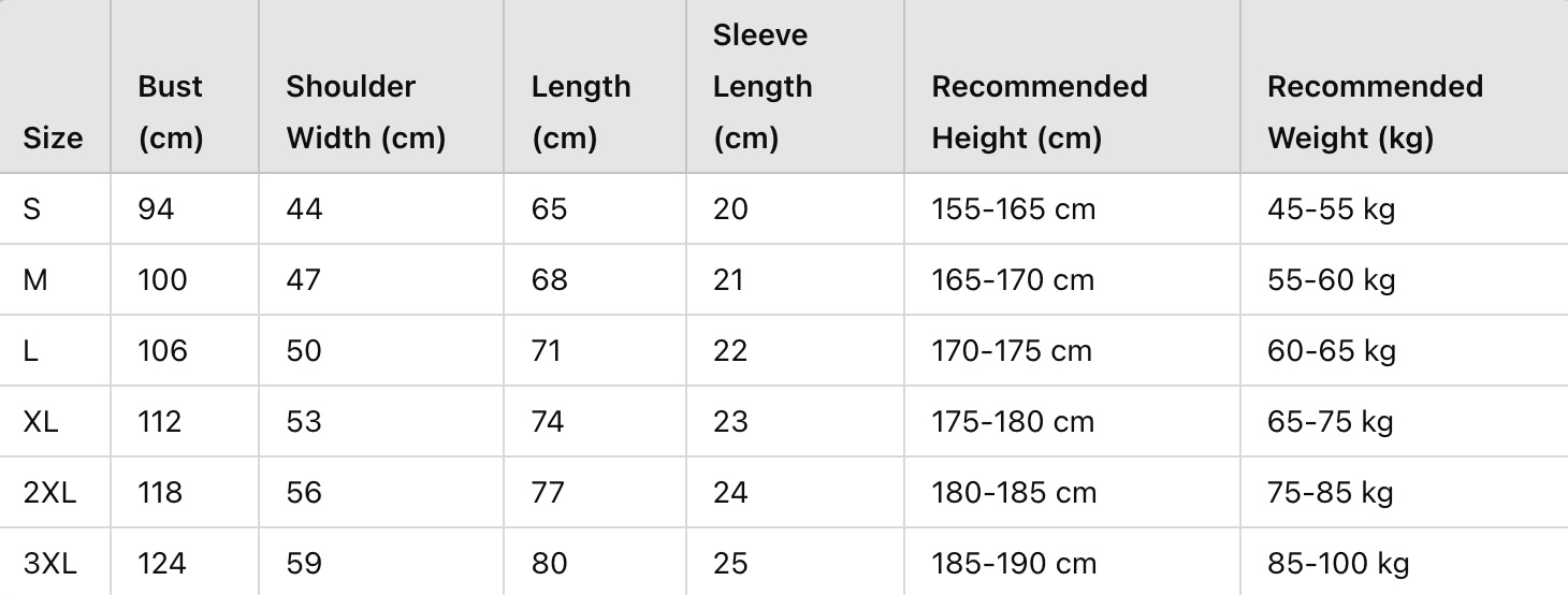 Every product page includes a detailed size chart for accurate measurements.