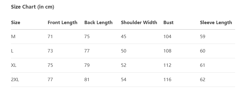 Every product page includes a detailed size chart for accurate measurements.
