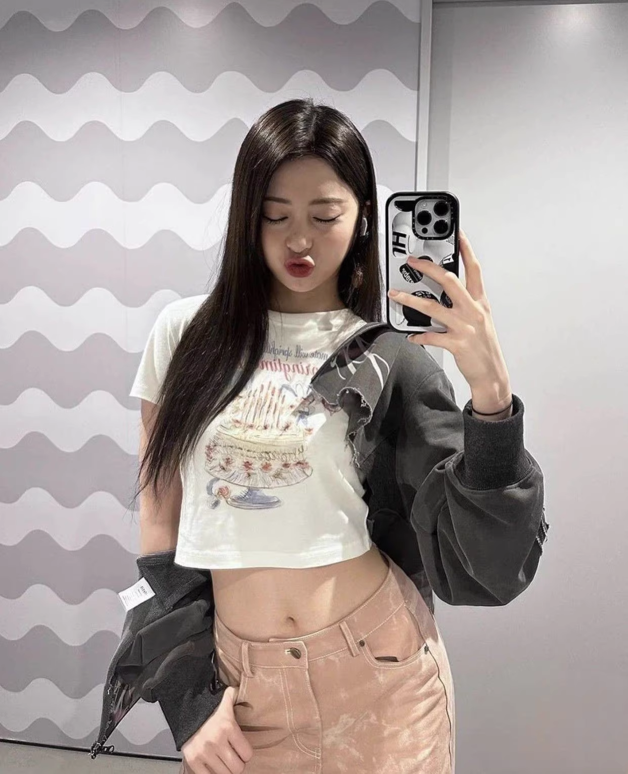 Lesserafim Yunjin inspired Cake Patterned Crop Top