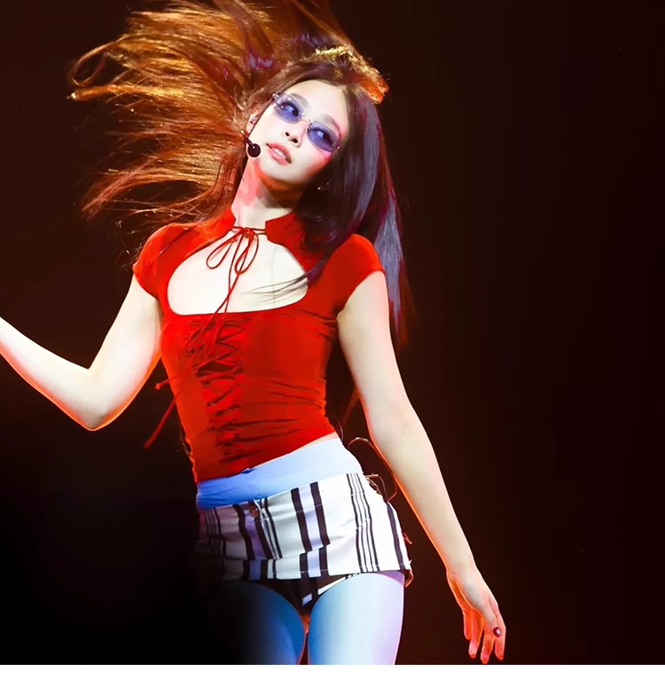 BLACKPINK Jennie Style Red Strappy Short Sleeve Top - Stage Performance Look | Jennie Style | K-pop Fashion Essential