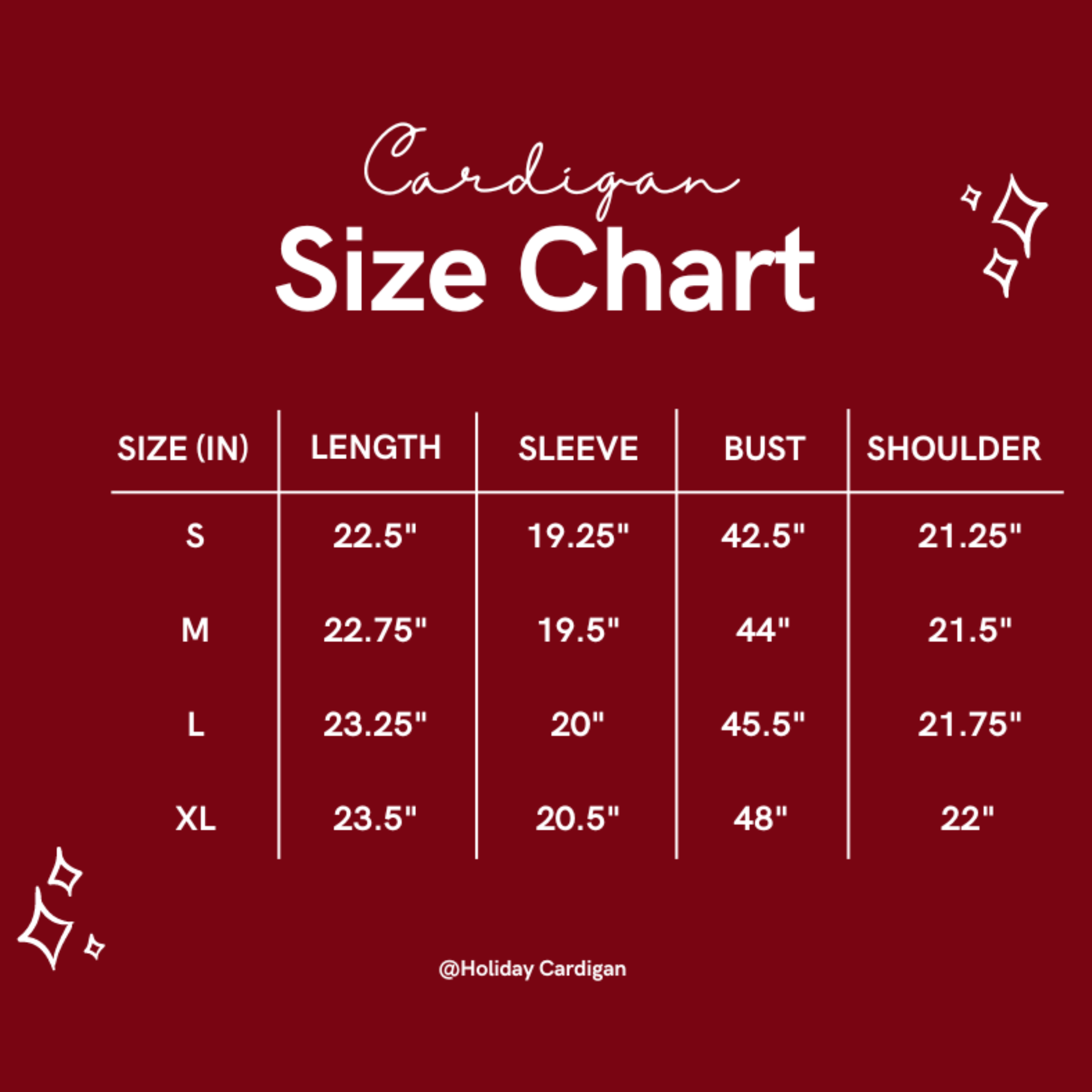 Every product page includes a detailed size chart for accurate measurements.