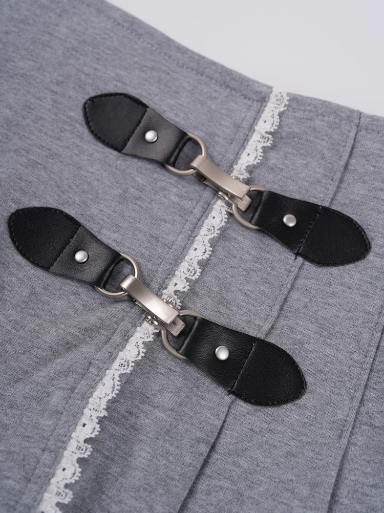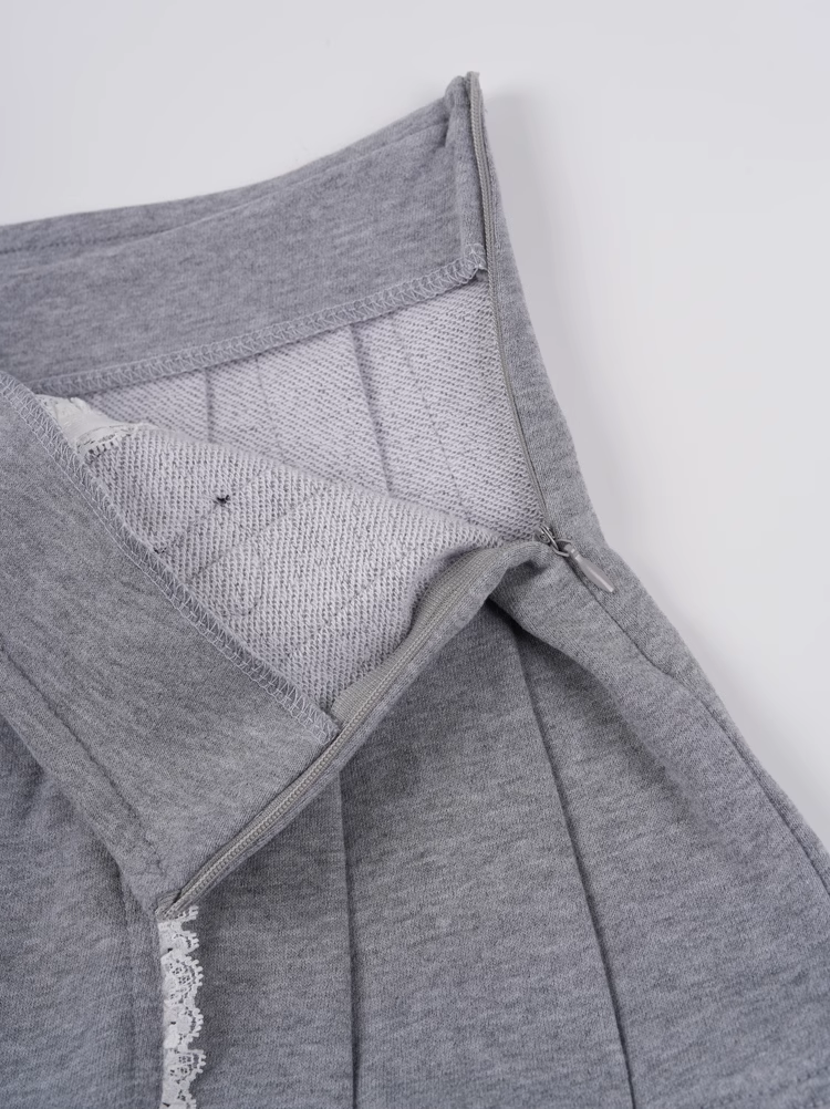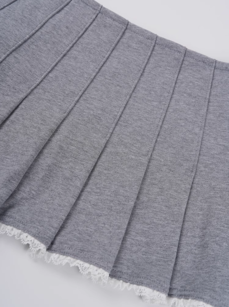 Red Velvet Joy Grey Lace Trimmed Pleated Mini Skirt