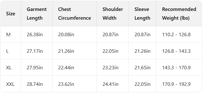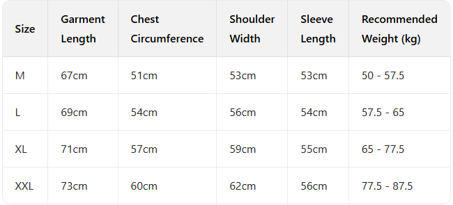 Every product page includes a detailed size chart for accurate measurements.