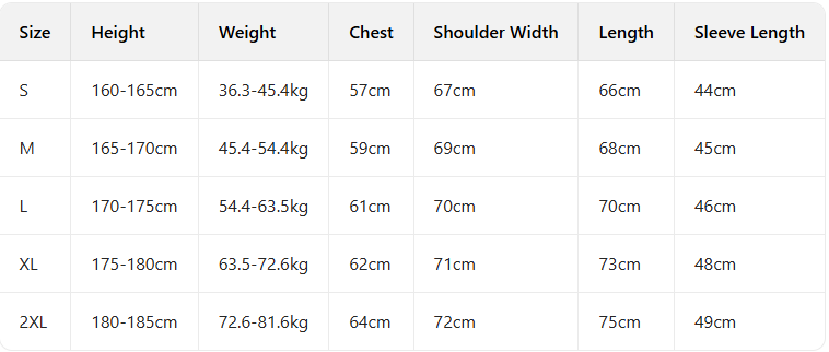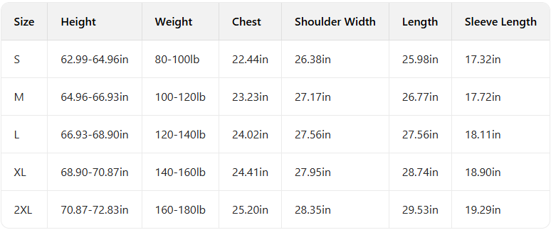 Every product page includes a detailed size chart for accurate measurements.