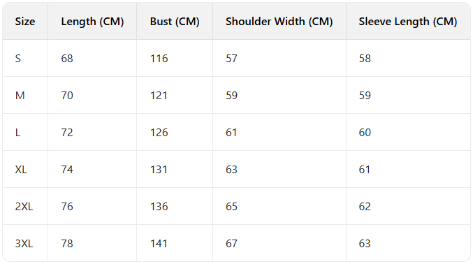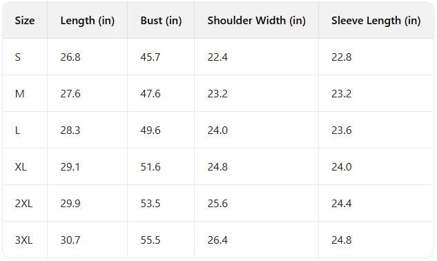Every product page includes a detailed size chart for accurate measurements.