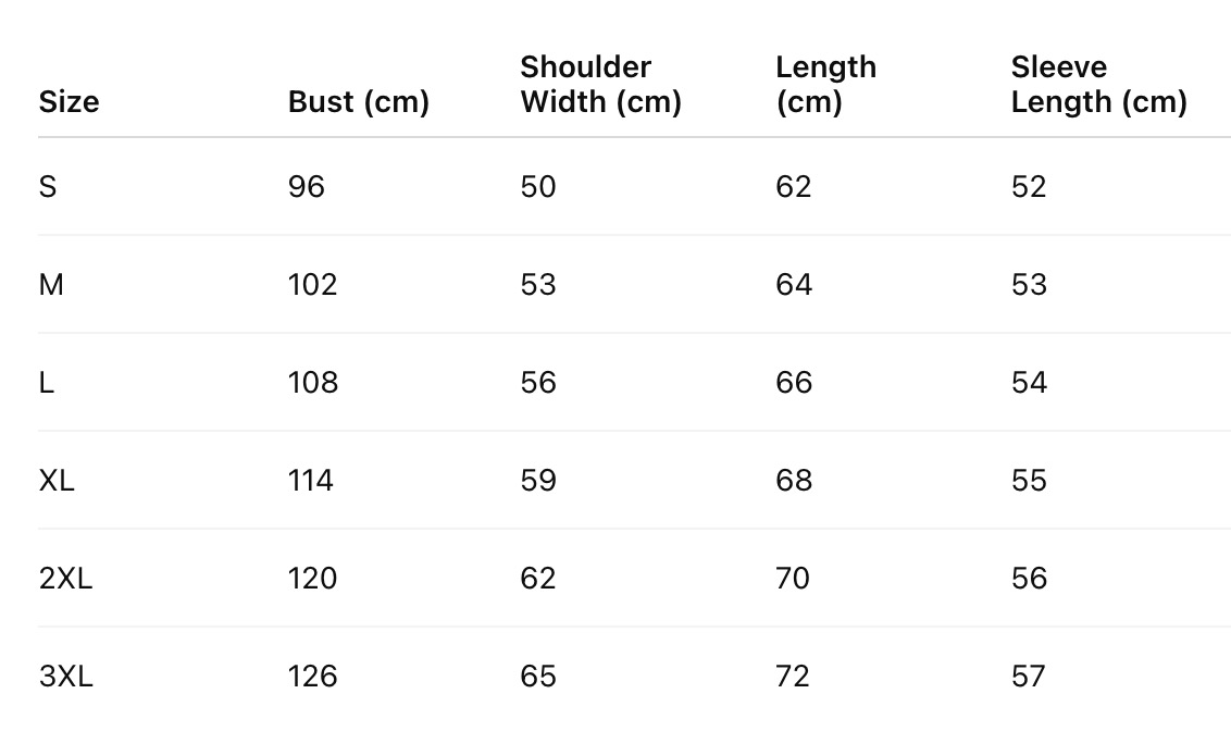 Every product page includes a detailed size chart for accurate measurements.