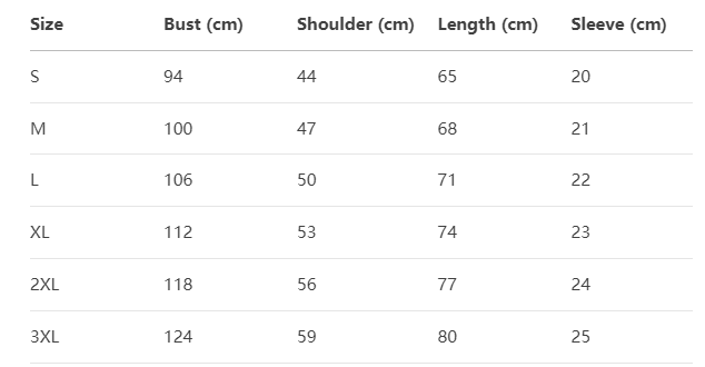 Every product page includes a detailed size chart for accurate measurements.