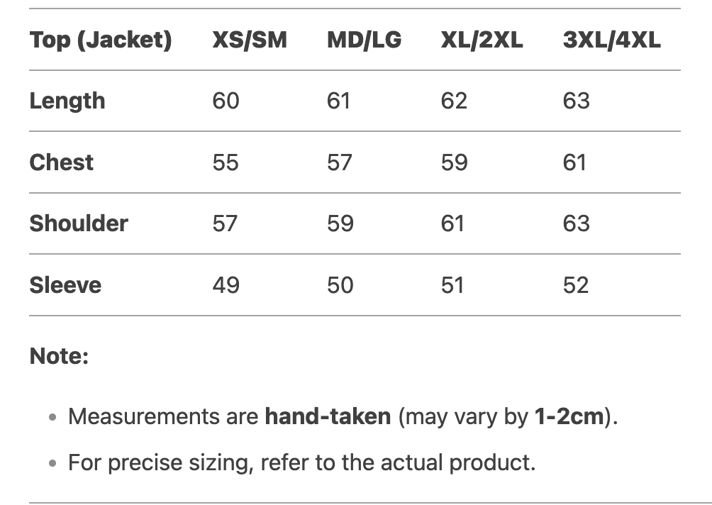 Every product page includes a detailed size chart for accurate measurements.