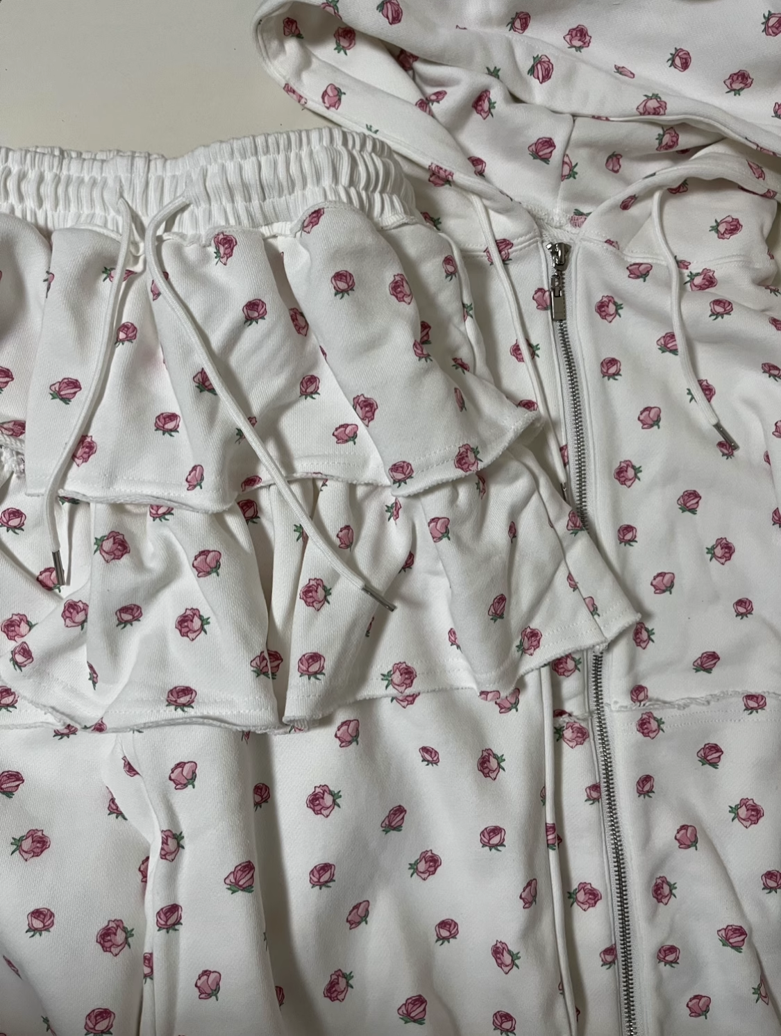 Twice Nayeon & Red Velvet Joy inspired Floral Hooded Jacket Sweatpants set