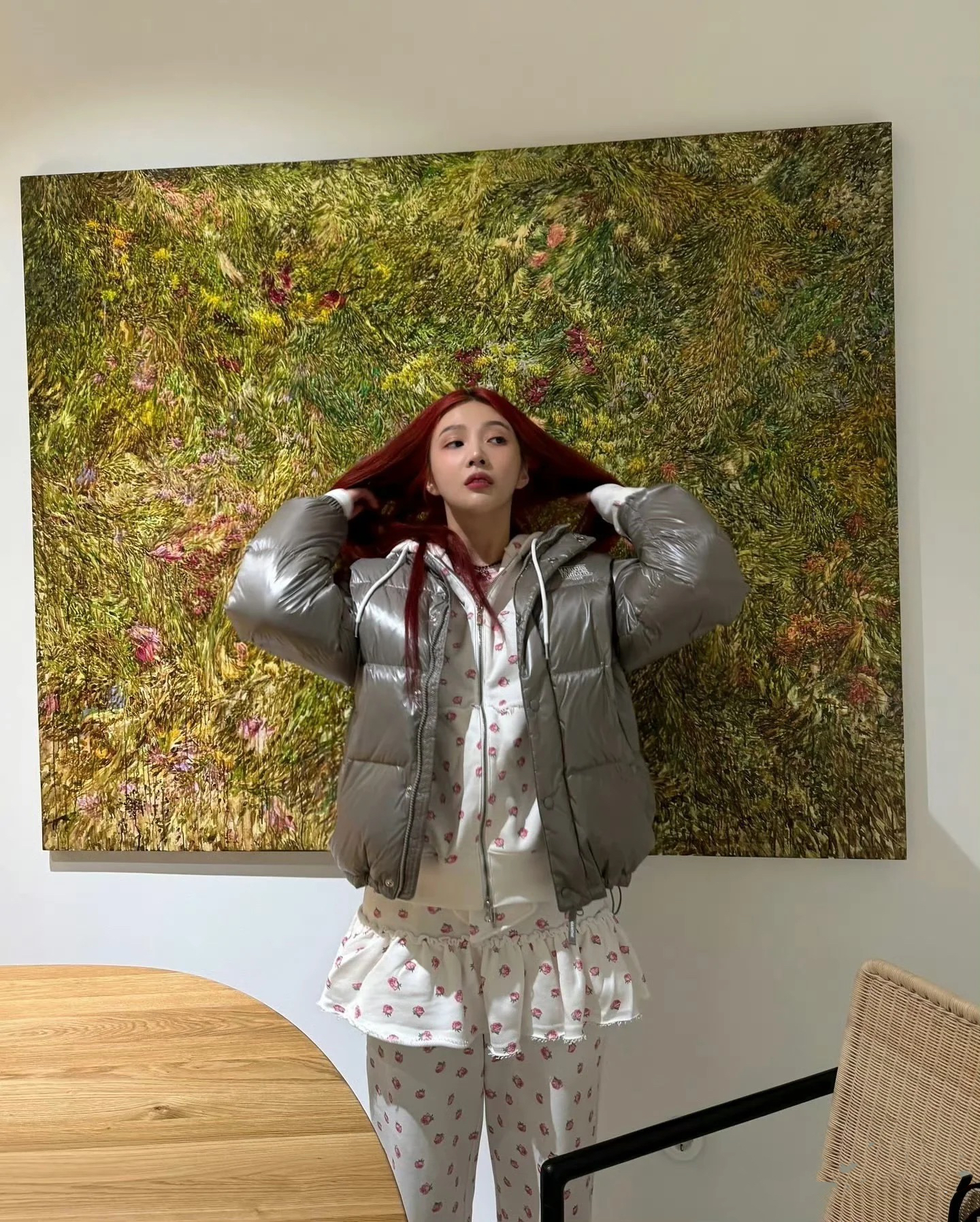 Channel the vibrant energy of Twice's Nayeon and Red Velvet Joy with this stunning floral hooded jacket and sweatpants set.The delicate floral pattern adds a touch of femininity, while the hooded jacket offers a trendy, laid-back vibe. The matching sweatpants ensure you stay cozy without sacrificing an ounce of chicness. Whether you're running errands, lounging at home, or looking to make a statement at a casual outing, this set is your ticket to nailing that coveted Twice&Red Velvet inspired look. Embrace the K-pop fashion trend and become the fashion icon you were born to be with this essential piece.