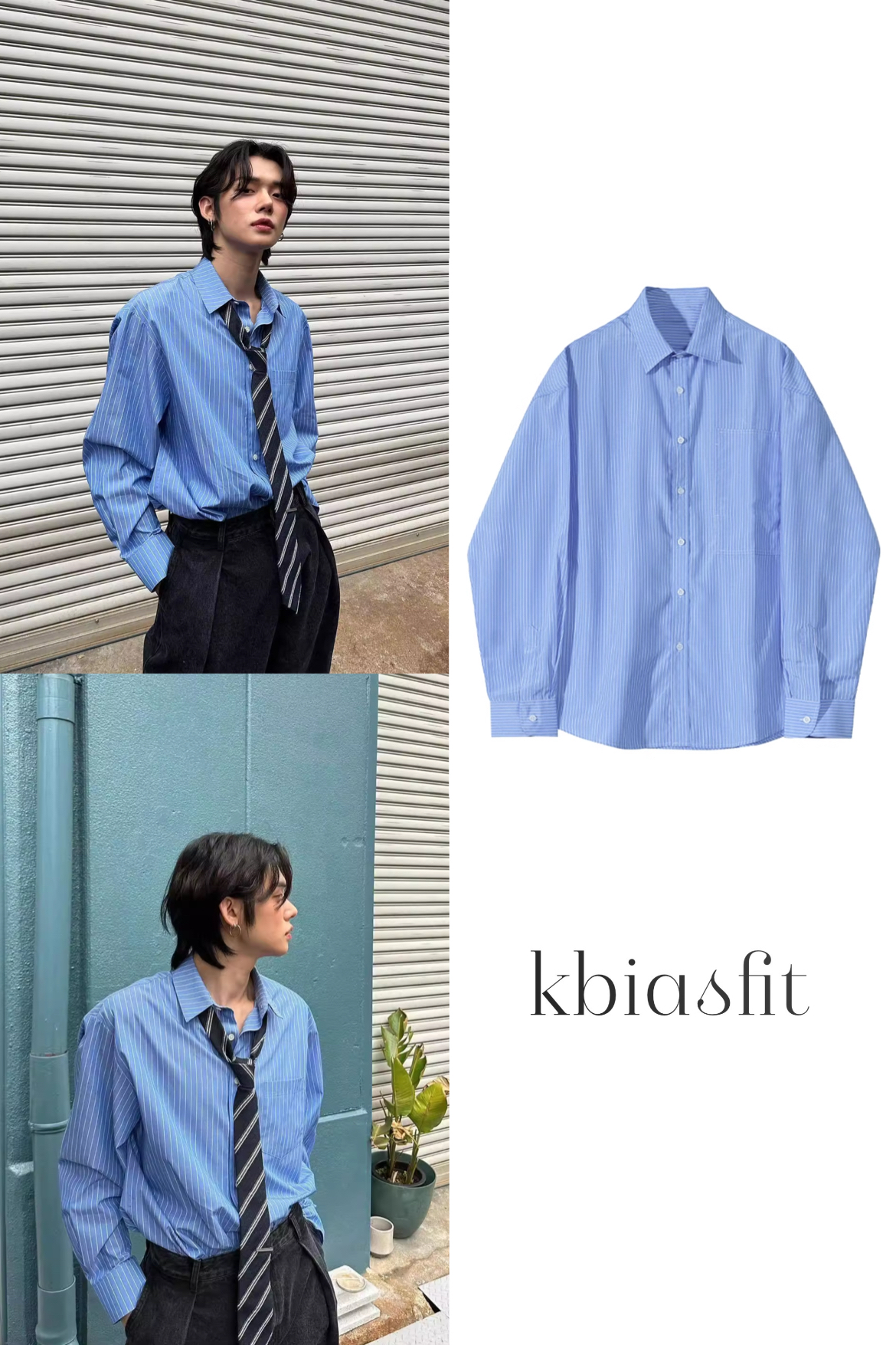 Elevate your wardrobe with this classic blue striped shirt inspired by TXT's Yeonjun. The timeless design combines effortless style with everyday comfort, perfect for creating both casual and polished looks.
