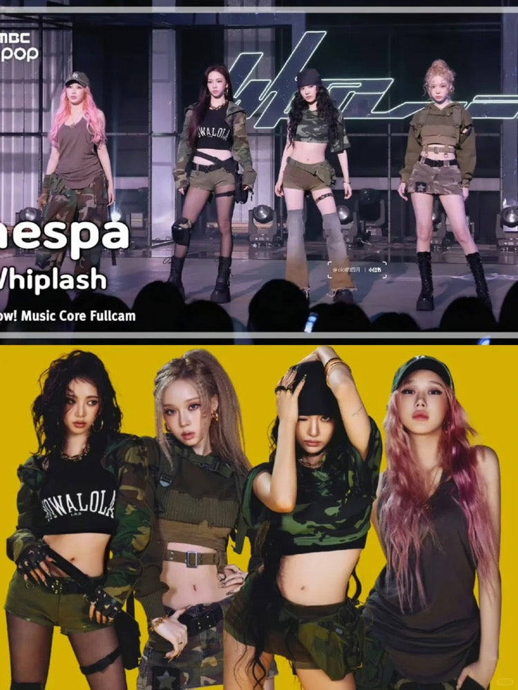 aespa KARINA Whiplash with the same retro camouflage workwear hit song performance clothing kpop stage costume