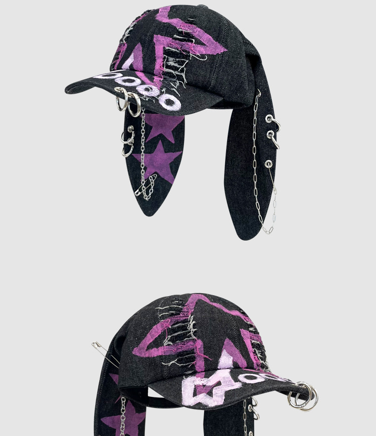 Y2K Grunge Rabbit Ear Baseball Cap – Distressed Denim Streetwear Hat - new jeans same style