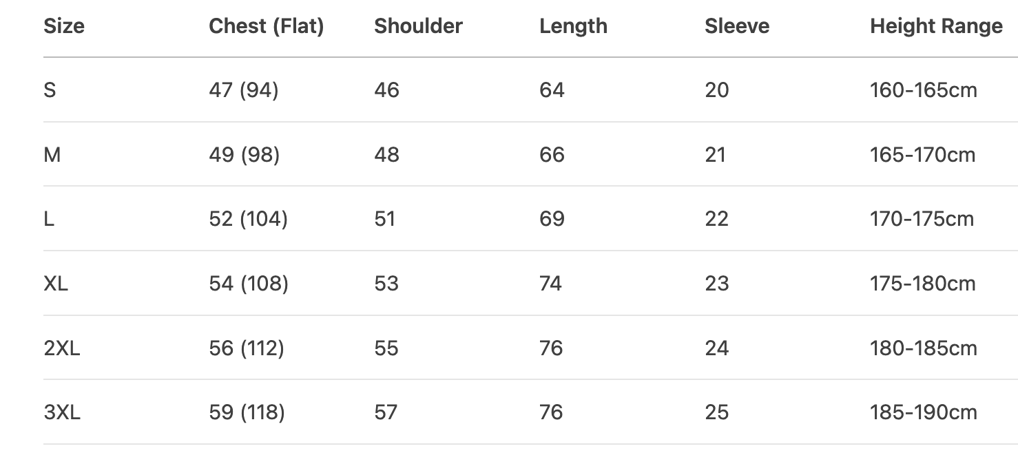Every product page includes a detailed size chart for accurate measurements.