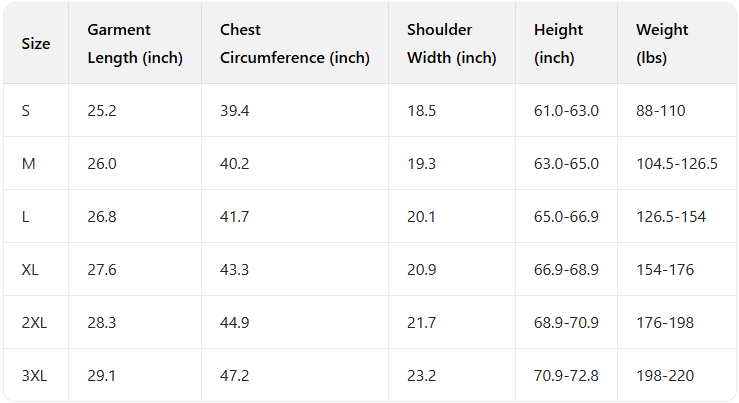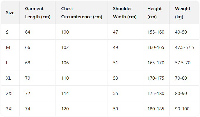 Every product page includes a detailed size chart for accurate measurements.