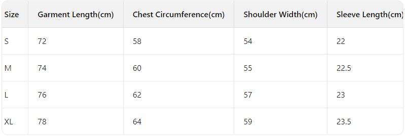 Every product page includes a detailed size chart for accurate measurements.