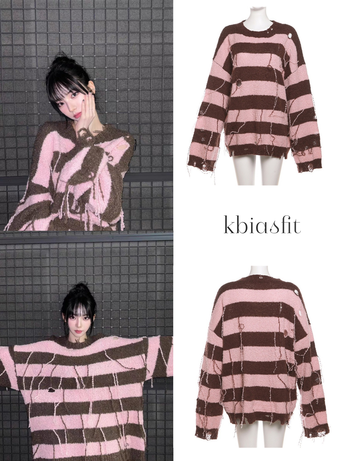 Aespa Karina Inspired Pink-Brown Striped Sweater