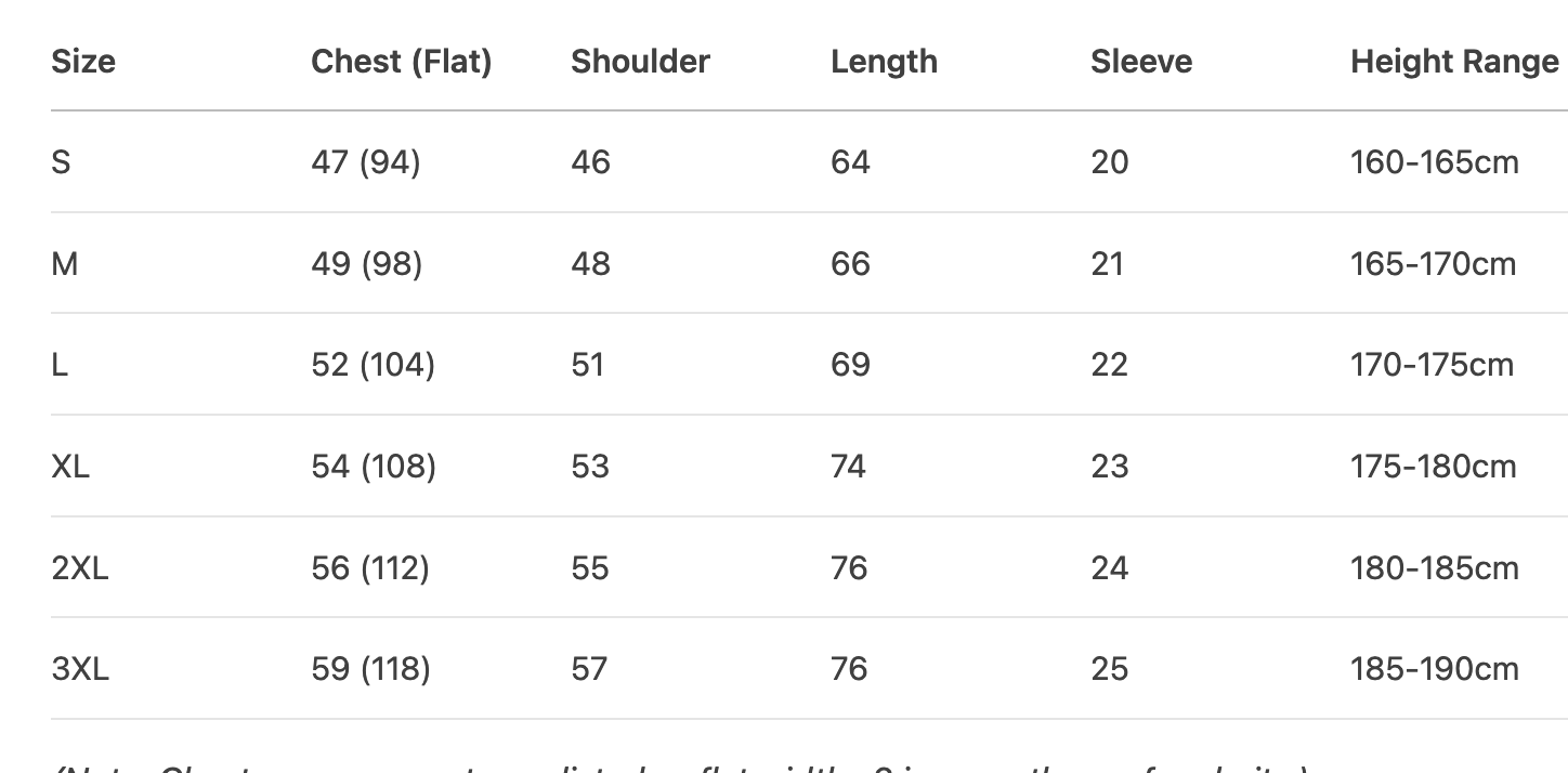 Every product page includes a detailed size chart for accurate measurements.
