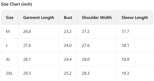 Every product page includes a detailed size chart for accurate measurements.