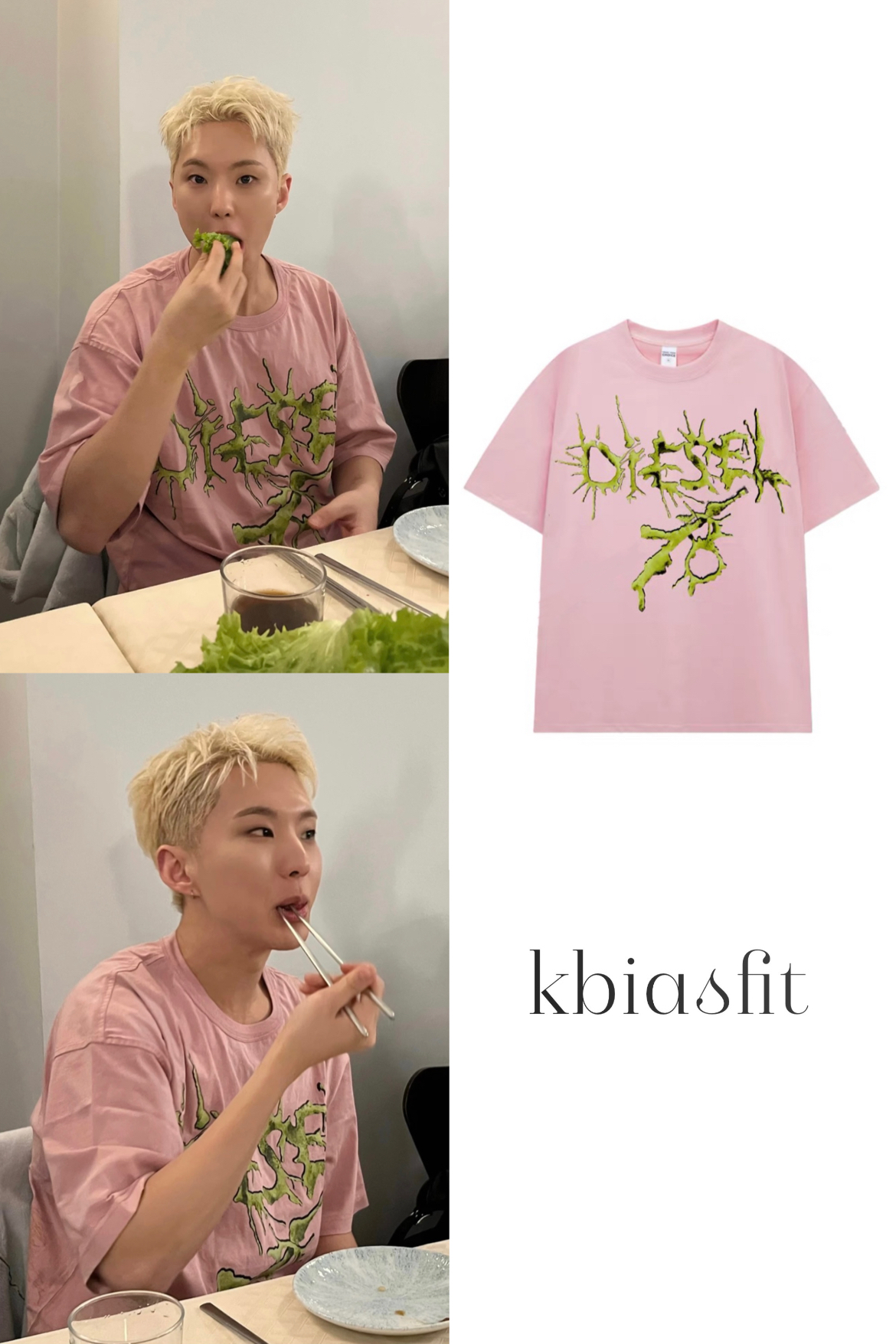 This pink T-shirt is inspired by Hoshi's style. It features a unique green pattern that adds a touch of freshness and charm. Made from 100% cotton, it offers both comfort and durability. The high - quality cotton fabric makes it soft and breathable, perfect for casual wear. It's a must - have for fans of Hoshi and those who love stylish, trendy clothing.