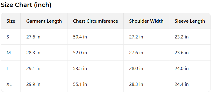 Every product page includes a detailed size chart for accurate measurements.