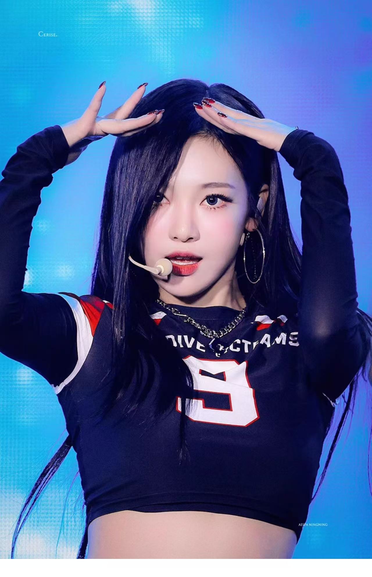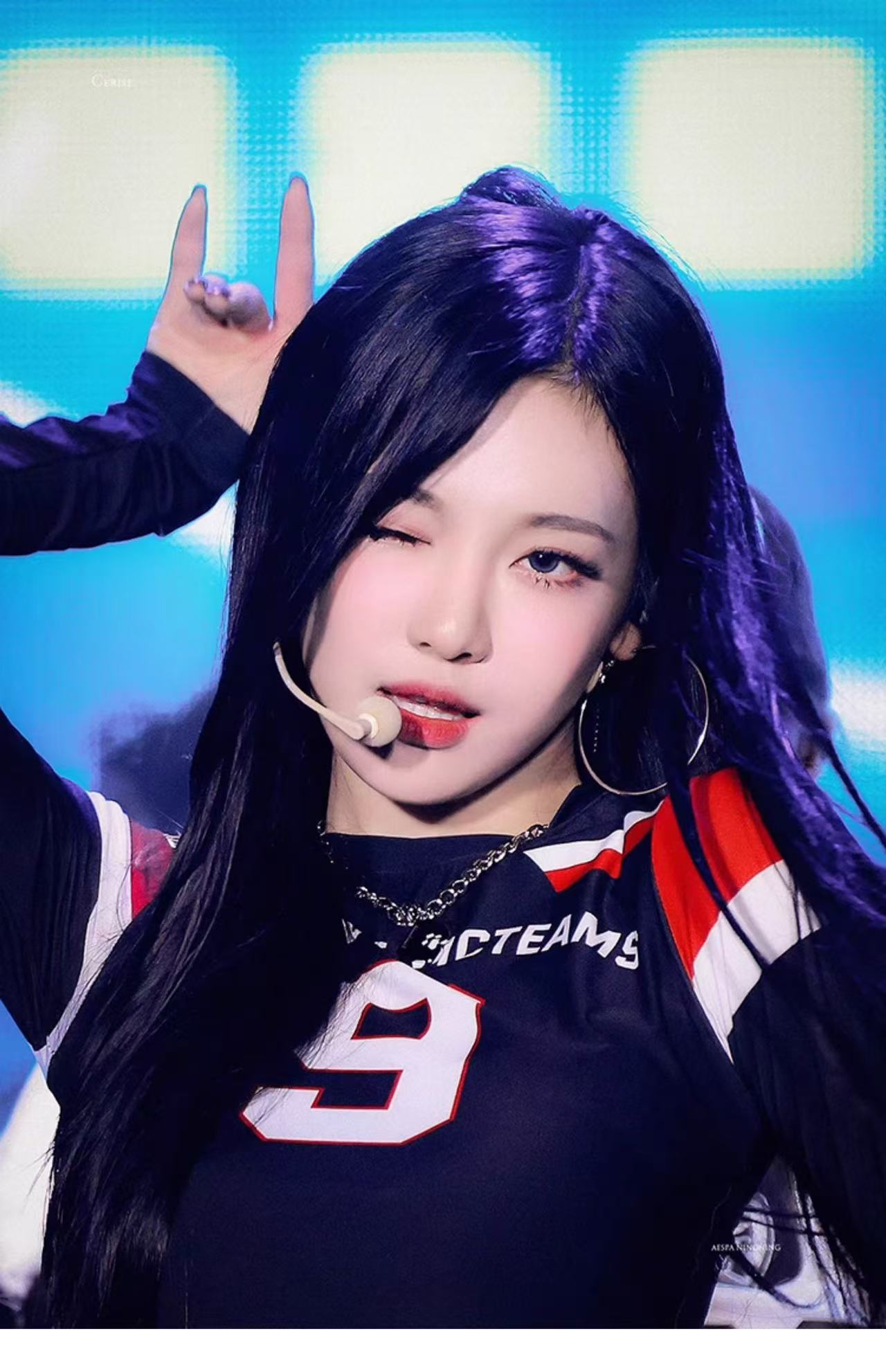 Embrace the allure of Ningning's stage presence with our Black Patchwork Long Sleeve. This top masterfully combines sleek black fabric with striking red and white patchwork, echoing the dynamic energy of Aespa's performances. The bold "DRIVE V. TEAMS" print and the prominent number "9" add a sporty-chic edge, making it a standout piece. Ideal for fans eager to replicate Ningning's iconic style, this long-sleeve is a must-have for your Aespa-inspired wardrobe. Step into the spotlight and shine just like your idol!