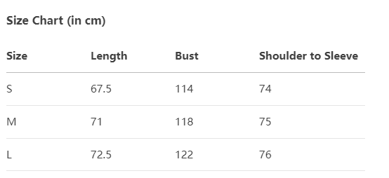 Every product page includes a detailed size chart for accurate measurements.