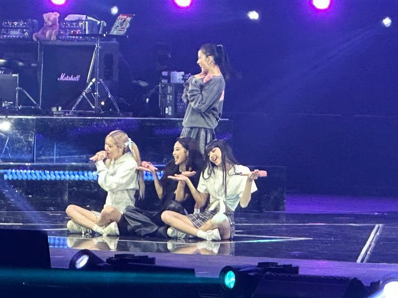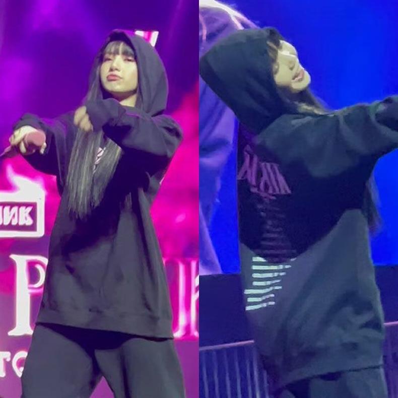 BLACKPINK's BORN PINK World Tour concert merch (hoodies, sweatshirts, or outfits) worn by Jisoo, Jennie, Lisa, and Rosé during their North American tour stops