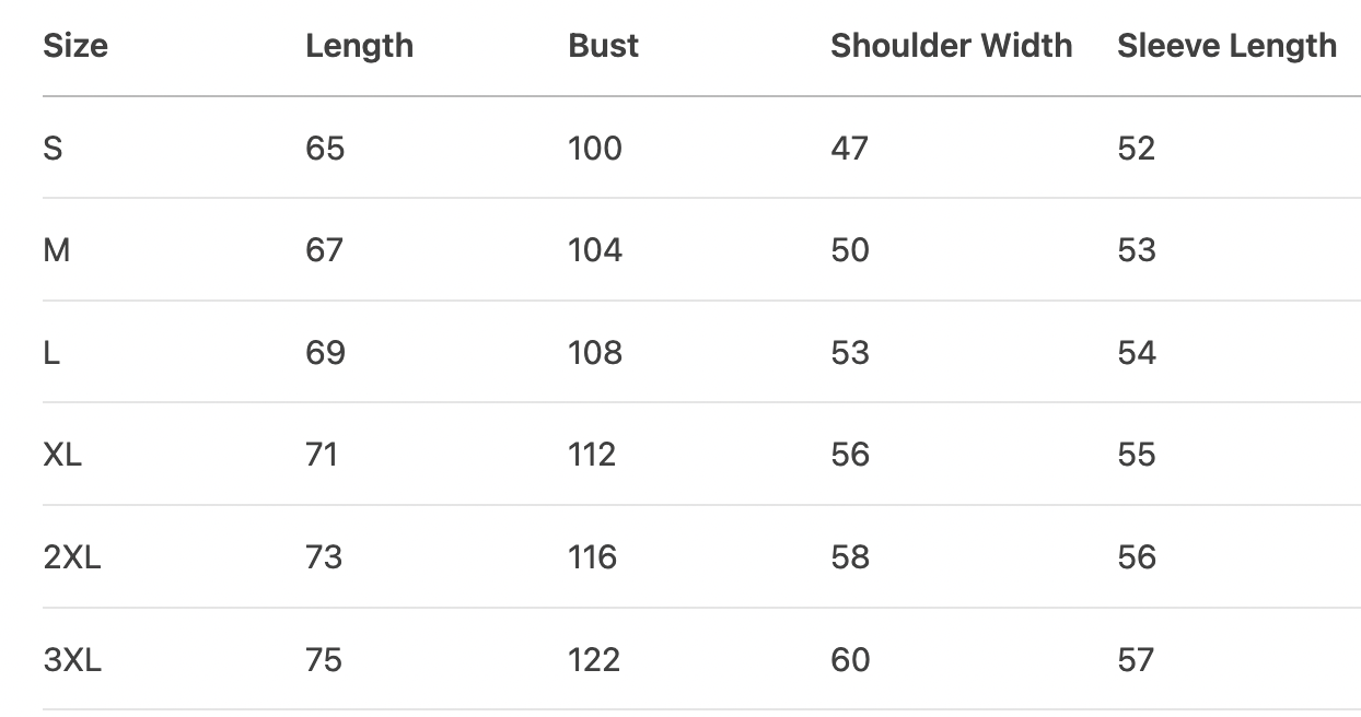 Every product page includes a detailed size chart for accurate measurements.