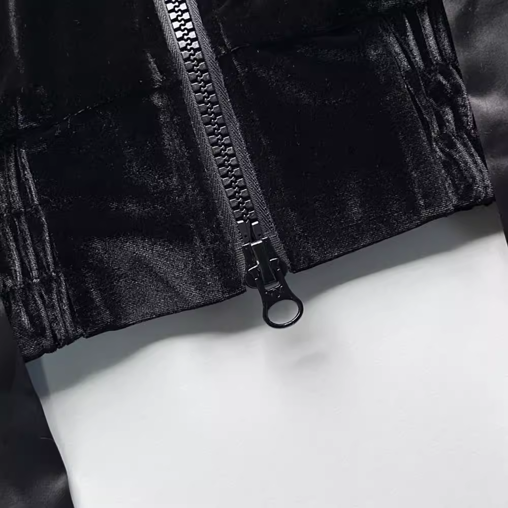 Step into the spotlight with the Bow tie Ribbon Zipper Velvet Jacket inspired by Rei of IVE. This black velvet jacket exudes an air of sophistication and modern edge. The unique bow - tie ribbon detail adds a touch of playfulness and flair, while the zipper closure offers a sleek, contemporary look. Whether you're heading to a concert or a stylish urban outing, this jacket is sure to elevate your ensemble and make you stand out with its distinctive design.