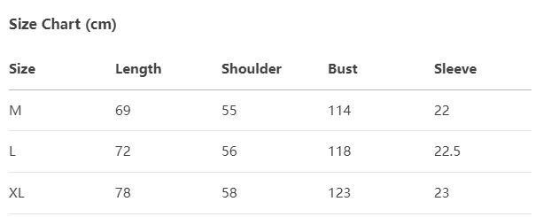 Every product page includes a detailed size chart for accurate measurements.